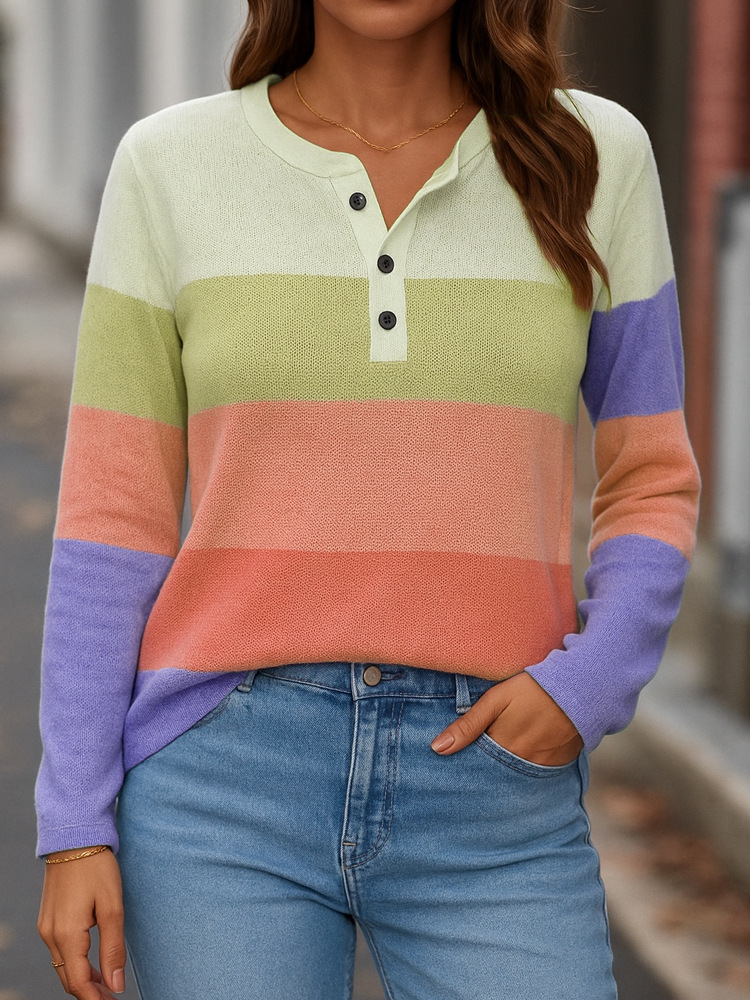 Casual V-neck Long Sleeve Loose Pullover Digital Printing